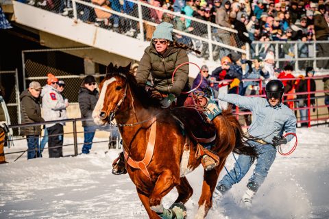 The WYO Winter Rodeo is a lively and distinctive annual event held in Sheridan, Wyoming, that brings together traditional western rodeo action and wintry thrills. At the heart of the celebration is skijoring, where a skier is pulled by a horse through a course lined with gates, jumps, and rings — racing for cash prizes, custom buckles, and glory. Beyond the races, the rodeo features family-friendly activities, including sledding on a historic estate, snowshoeing, and hockey games. Over the years it’s become a beloved winter tradition, drawing both locals and visitors to experience Wyoming’s wildest winter event.