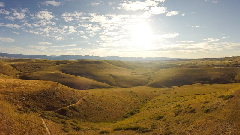 And finally, the trail that feels like a departure: Kicking Horse Trail. Here, the terrain broadens, the sky seems to deepen, and the presence of working land becomes unmistakable. This trail welcomes not just hikers and bikers, but horses too—a reminder that this is still ranch country.